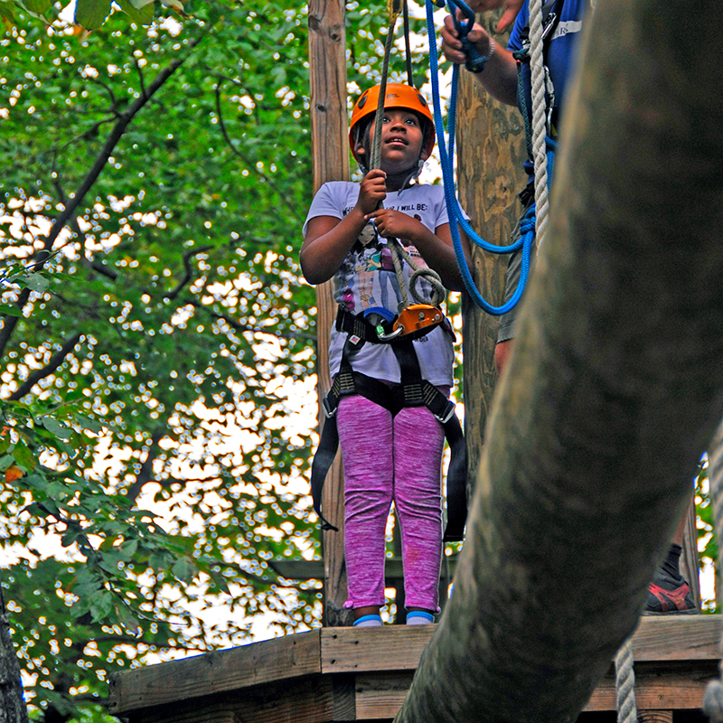 Our Kids' Adventure Course, geared for ages 12 and under, still packs a challenge with its burma bridge, log crossing, swinging vine bridge, net traverse, and a 100-foot zipline.